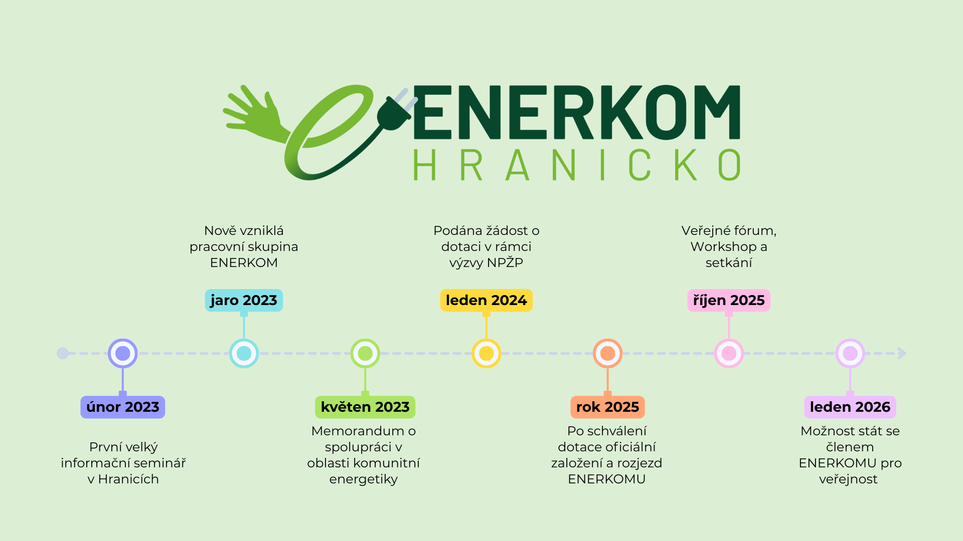 Rok 2025: Po schválení dotace a dokončení přípravných fází došlo k oficiálnímu založení a rozjezdu ENERKOMu Hranicko jako energetického společenství.